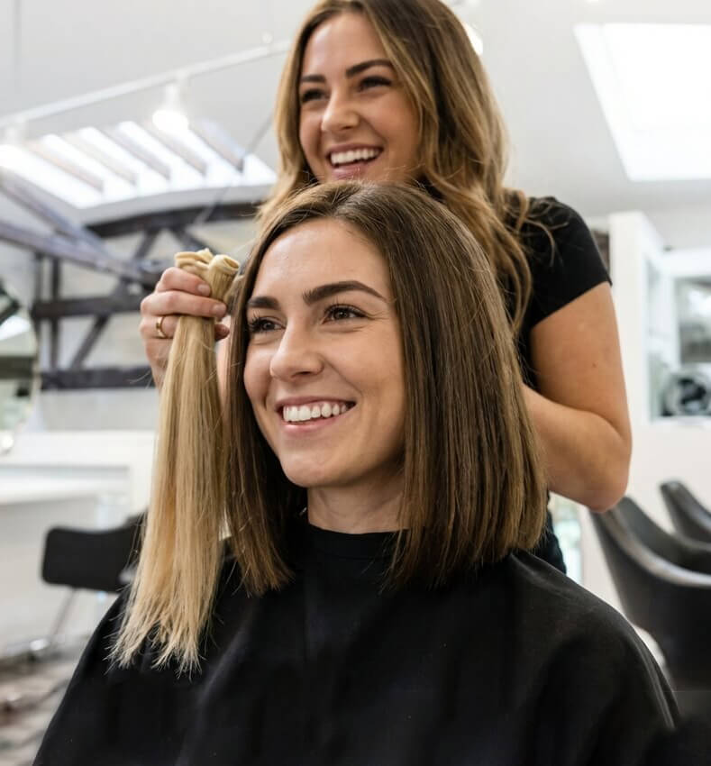 Keratin tip hair extensions are individual strands bonded to your natural hair using keratin. They offer the most natural movement and long-lasting results, making them ideal for clients who want a seamless, luxury finish.