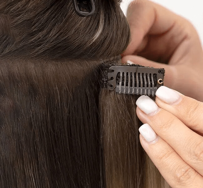 Sew-in extensions (also called weft extensions) are sewn into a beaded row foundation. They are ideal for clients who want maximum volume and fullness.