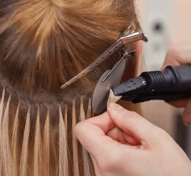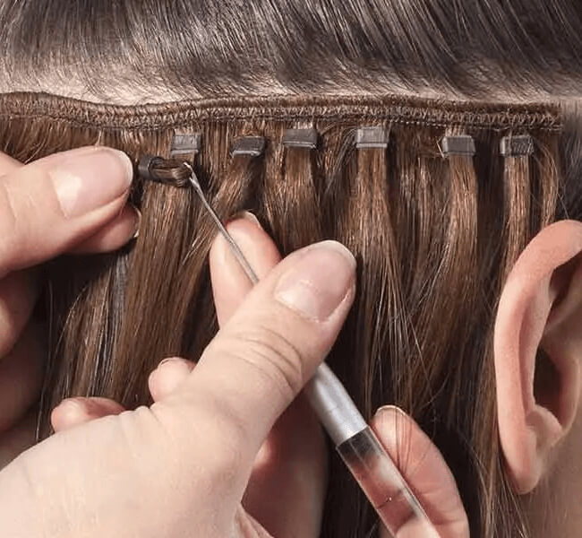 V-light hair extensions are an advanced method designed for very fine or thinning hair, especially around the hairline. They use a lightweight bonding technique to create invisible volume where traditional extensions cannot.