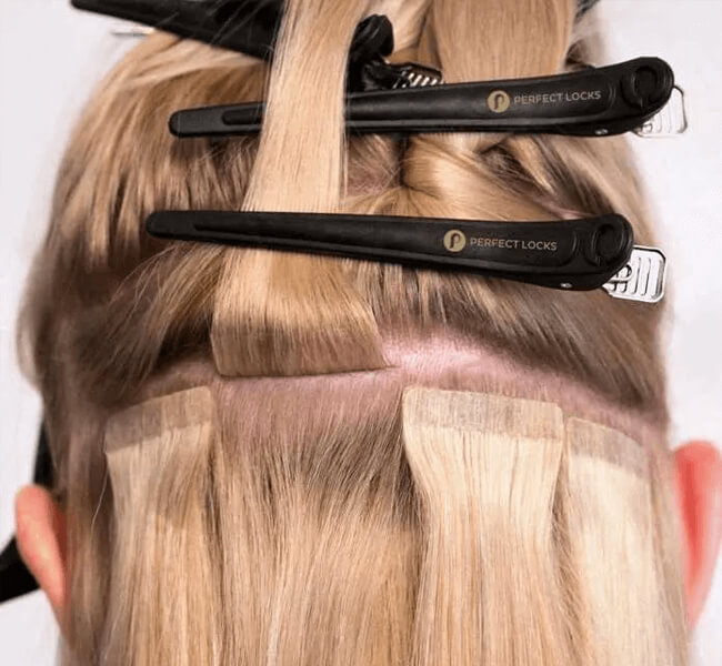 Tape-in extensions usually require maintenance every 6 to 8 weeks, where they are removed and reinstalled closer to the scalp.
